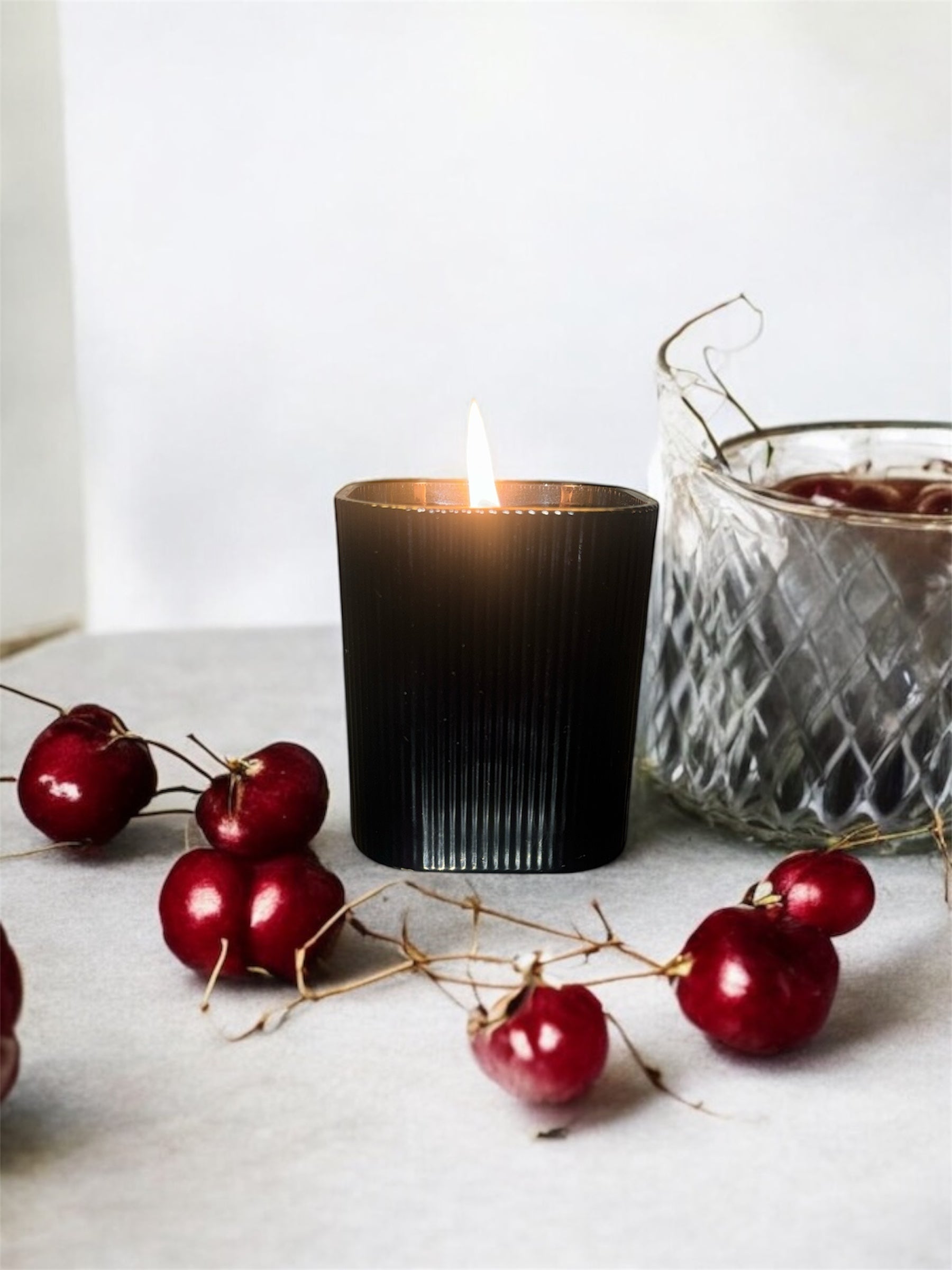 Experience the comforting embrace of cherry with this warm, inviting fragrance. It features notes of black cherry, almond, raspberry, vanilla, bergamot, ylang ylang, musk, amber, and sandalwood. Enhanced with cedarwood, vetiver, tonka absolute, clove, and eucalyptus essential oils for a complex, expertly crafted aroma.