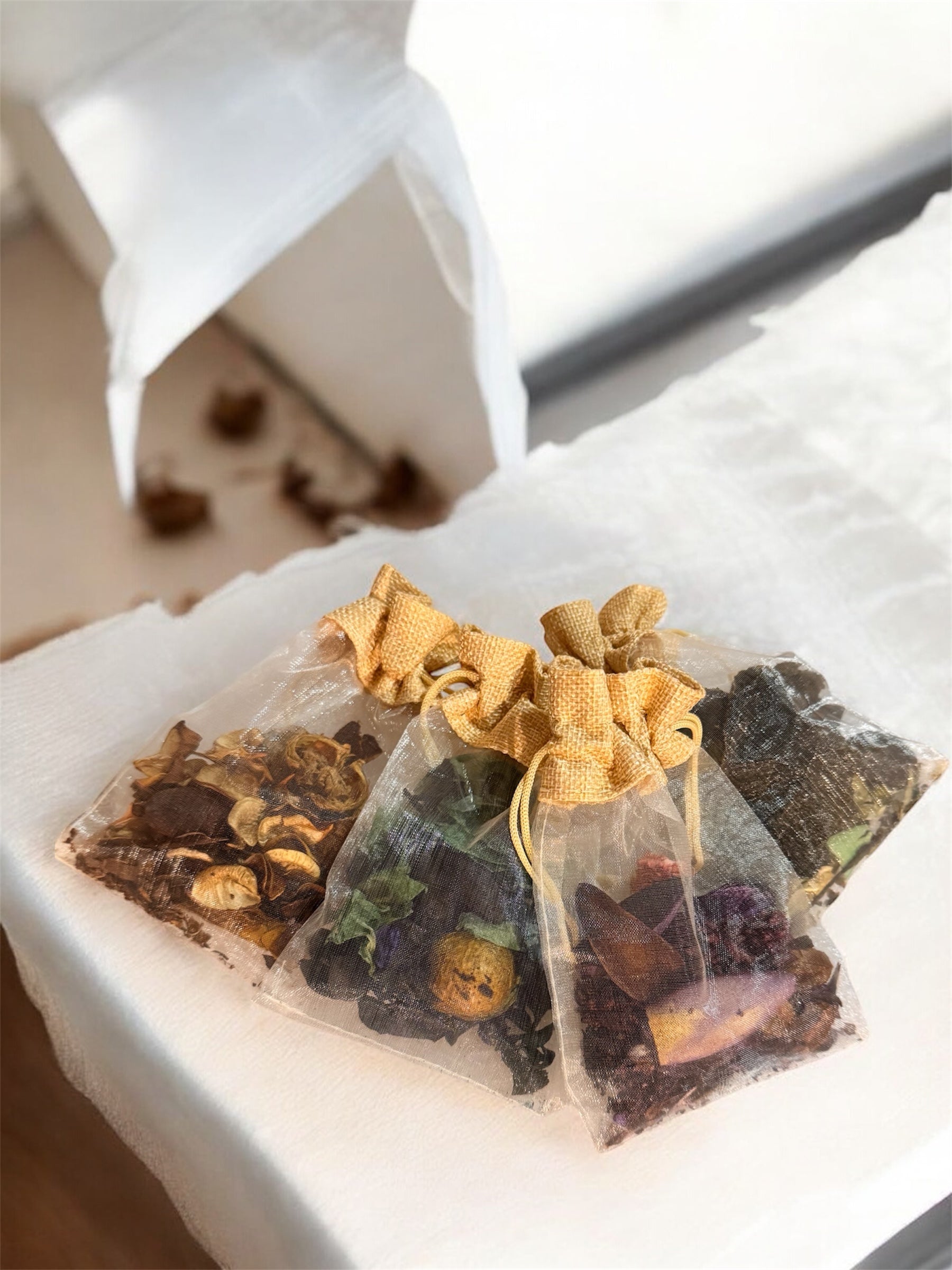 Enjoy our potpourri you adore, now in cute little scent satchels made to brighten up spaces like your car, closets, drawers and other compact, cozy little spots!